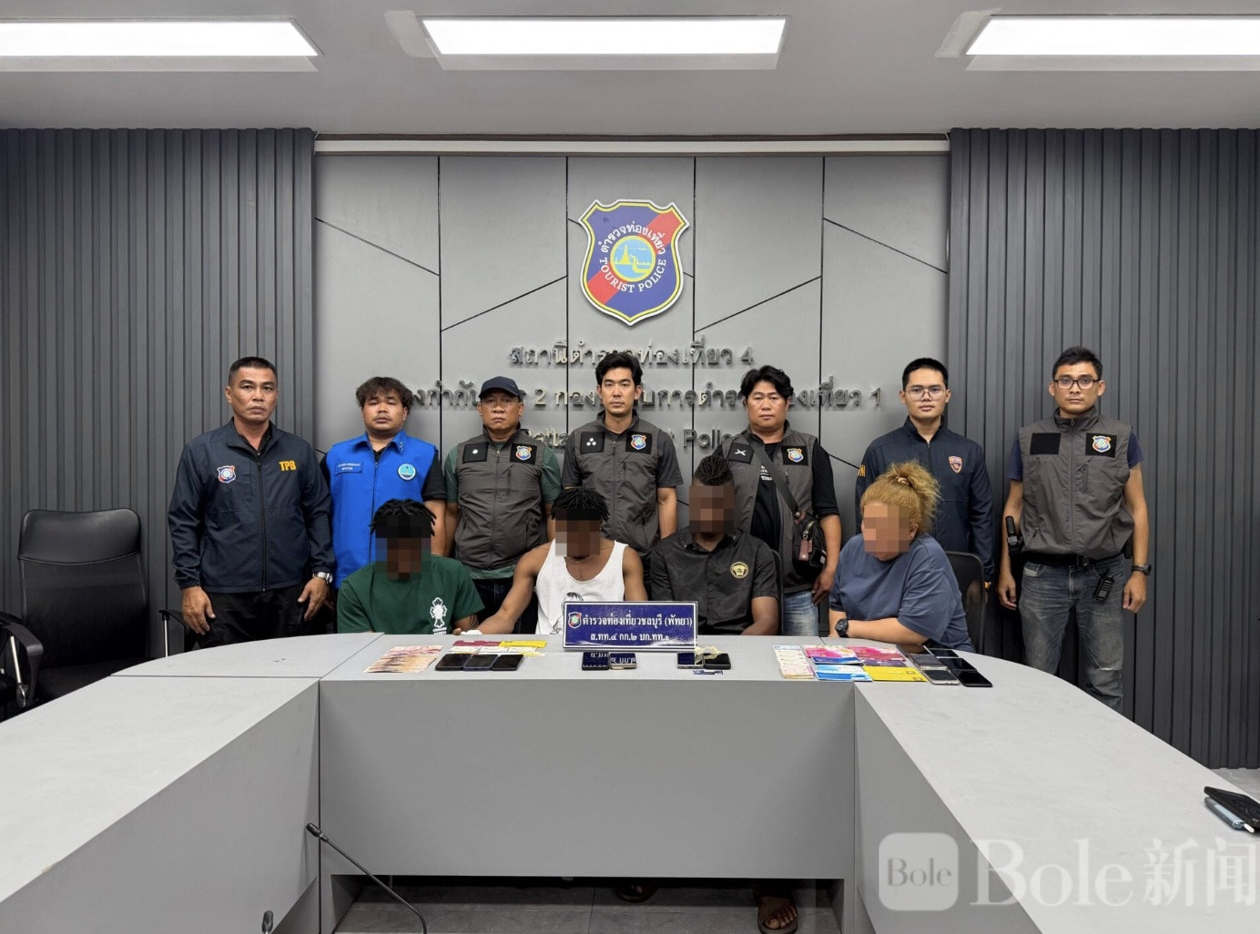 Bole新闻专讯:泰国春武里府芭提雅警方于4月28日联合多部门展开突击行动,在当地一处酒店内捣毁一个跨国诈骗团伙,当场逮捕3名尼日利亚籍男子及1名泰国女子,并查获多项涉案证物。